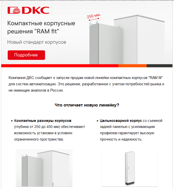 Компания ДКС начала продажи новой линейки компактных корпусов и аксессуаров “RAM fit” для систем автоматизации. Это решение, разработанное с учетом потребностей рынка и не имеющее аналогов в России.