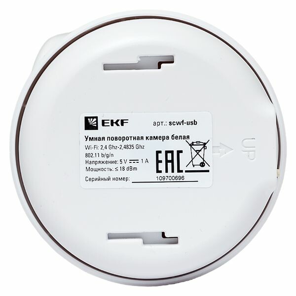 Умная поворотная камера EKF Connect будет отлично выглядеть в любом интерьере. Она позволяет легко организовать видеонаблюдение за домом или квартирой, а также присматривать за детьми или питомцами. Можно в любой момент посмотреть картинку с камеры в приложении EKF Connect Home для Android и iOS. Камера поворачивается по вертикали и горизонтали, также есть режим автоматического слежения за движущимся объектом. Видео записывается на карту памяти или передаётся по открытому протоколу ONVIF. Также есть функция определения движения с отправкой уведомления и фотографии в приложение, ночной режим с ИК-подсветкой до 10 метров, микрофон и динамик для двухсторонней аудиосвязи. Камеру можно поставить на любую горизонтальную поверхность или закрепить шурупами из комплекта на стене или потолке. Преимущества: Разрешение FullHD 1080p, матрица 2 МП. Функция определения движения с отправкой уведомления и фотографии в приложение. Ночной режим с ИК-подсветкой до 10 метров. Микрофон и динамик для двухсторонней аудиосвязи. Поддержка прот