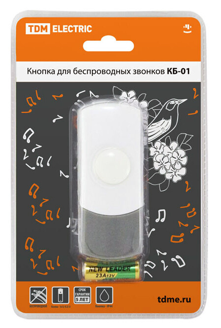 Применение:Используются в качестве дверных звонков или устройств внутреннего вызова. Преимущества:Бюджетное предложение на электротехническом рынке.Дальность работы беспроводных звонков 100-300 метров (на открытом пространстве).В ряде моделей имеется возможность разместить на кнопке номер квартиры и/или фамилию хозяина.В ряде моделей пользователь имеет возможность изменения кода звонка при порче/утере старой кнопки или для подключения дополнительной кнопки.В ассортименте имеются отдельно кнопки для проводных и беспроводных звонков, что позволит произвести замену при порче старой кнопки.Ряд моделей имеет кнопки со степенью защиты IP44, которые можно устанавливать на улице.Имеются исполнения с 2-мя кнопками (для разных выходов из дома) и с 2-мя звонками (для разных этажей или зданий: дом, гараж).Звонки упакованы в яркую блистерную упаковку, оформленную в корпоративных цветах TDM ELECTRIC, на каждом блистере есть информационные пиктограммы с характеристиками звонков.0: Применение:Используются в качестве дверных звонков или устройств внутреннего вызова. Преимущества:Бюджетное предложение на электротехническом рынке.Дальность работы беспроводных звонков 100-300 метров (на открытом пространстве).В ряде моделей имеется возможность разместить на кнопке номер квартиры и/или фамилию хозяина.В ряде моделей пользователь имеет возможность изменения кода звонка при порче/утере старой кнопки или для подключения дополнительной кнопки.В ассортименте имеются отдельно кнопки для проводных и беспроводных звонков, что позволит произвести замену при порче старой кнопки.Ряд моделей имеет кнопки со степенью защиты IP44, которые можно устанавливать на улице.Имеются исполнения с 2-мя кнопками (для разных выходов из дома) и с 2-мя звонками (для разных этажей или зданий: дом, гараж).Звонки упакованы в яркую блистерную упаковку, оформленную в корпоративных цветах TDM ELECTRIC, на каждом блистере есть информационные пиктограммы с характеристиками звонков.