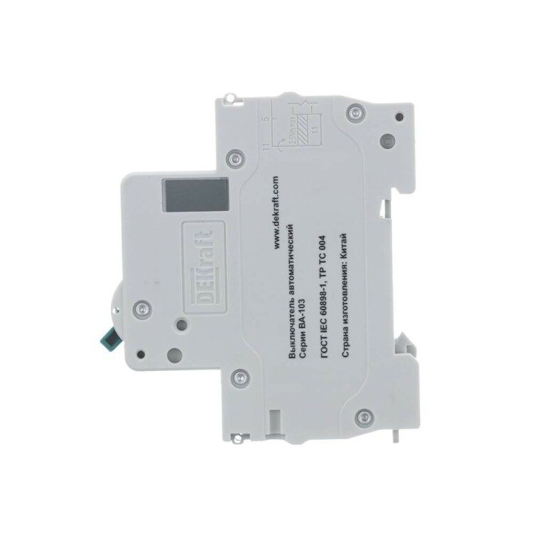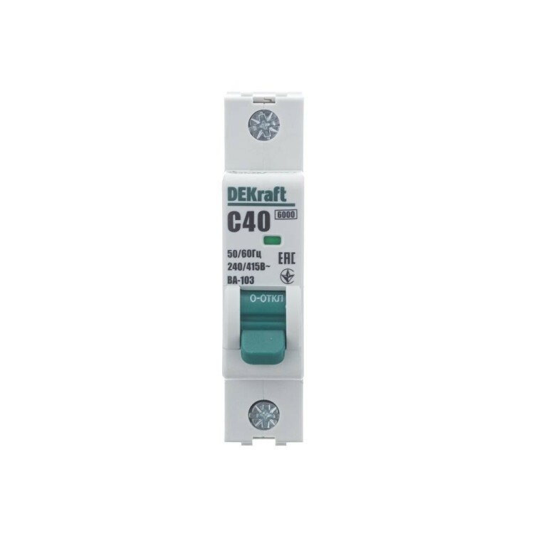 Автоматический выключатель серии ВА-103 NEW DEKraft; 1P; номинальный ток 40 А; характеристика C; отключающая способность 6 кА, что позволяет использовать аппараты в качестве вводных. 5 монолитных заклепок повышают прочность корпуса аппарата. Окошко-индикатор всегда показывает состояние контактов вне зависимости от положения рукоятки управления. Боковые каналы охлаждения повышают стабильность работы при высоких температурах окружающей среды. Есть возможность установки дополнительных аксессуаров с левой стороны устройства. Аппарат на 100% совместим с корпусами и оболочками DEKraft, Systeme Electric.