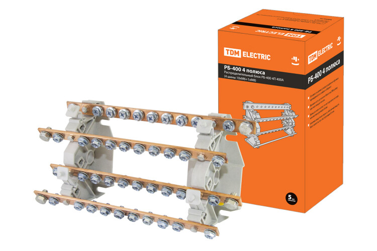 TDM Распределительный блок РБ-400 4П 400А (4 шины 10xM6+1хM8)