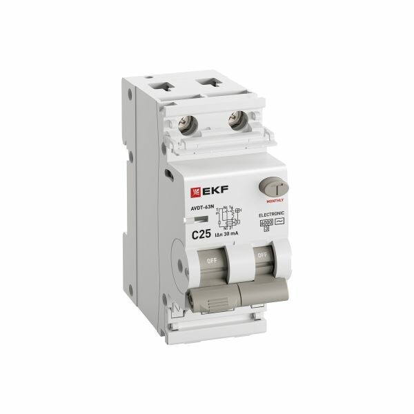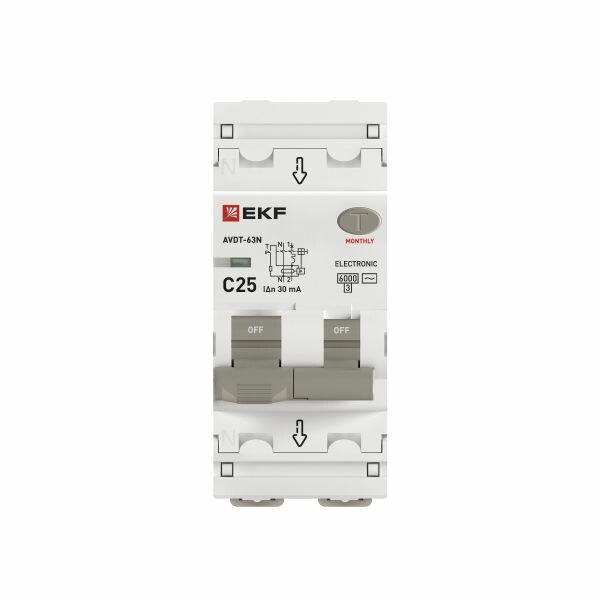 Автоматический выключатель дифференциального тока АВДТ-63N PROXIMA EKF – это аппарат, сочетающий функции автоматического выключателя с электромеханическим или электронным УЗО. При обнаружении автоматическим выключателем в защищаемом участке сети тока утечки (повреждения) на землю или сверхтока (тока перегрузки или короткого замыкания) происходит срабатывание устройства, приводящее к отключению защищаемой сети. Особая конструкция рычага обеспечивает информативность устройства, указывая на причину срабатывания (опущена только часть рычага – короткое замыкание или перегрузка, опущены обе части рычага – ток утечки). Особенностью данной серии АВДТ является усовершенствованная конструкция. Данные выключатели имеют пластиковые крышки, закрывающие доступ к винтовым зажимам и служащие для опломбирования винтовых клемм, что исключает несанкционированный доступ к проводникам. Автоматические выключатели дифференциального тока АВДТ-63N PROXIMA EKF соответствуют ГОСТ IEC 61009-1. Возможна коммутация алюминиевым и медным проводником.