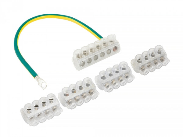 Набор клеммников уличного освещения типа sv-15.5 предназначен для соединения и разветвления 4-х или 6-и жильных кабелей внутри стоек или щитов опор и мачт уличного освещения. Подходит для медных и алюминиевых проводов. При подключении проводов необходимо зачистить концы от изоляции. Контакт с зачищенным проводом обеспечивается прижимными винтами с внутренним шестигранником. На проводящие части нанесена контактная смазка. Корпус клеммника неразборный.