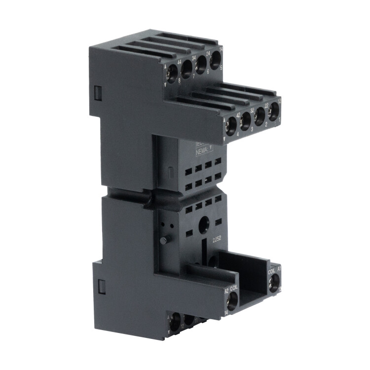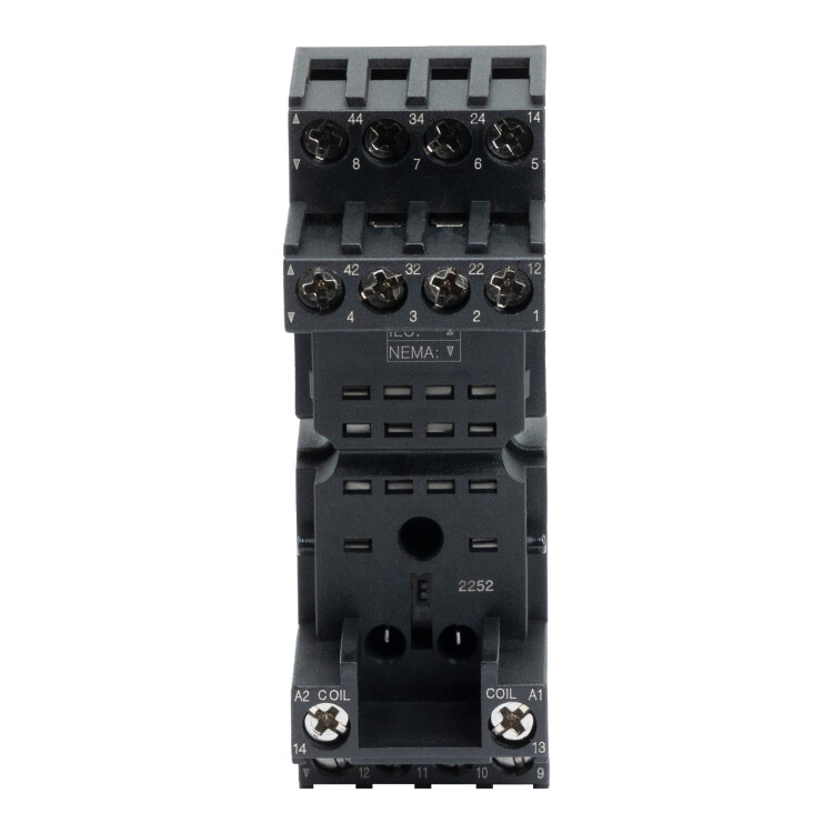 Колодка c винтовыми клеммами. Уставновка на Din-рейку. Для реле на 4 контактные группы серии IR. Низкопрофильная 2-х уровневая.