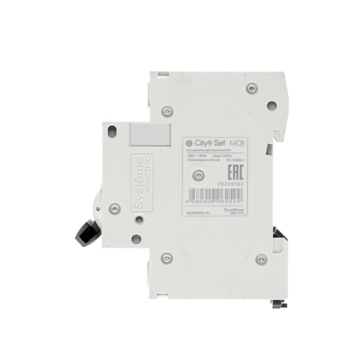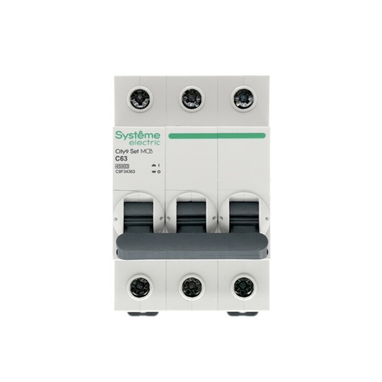 Автоматический выключатель серии City9 Set Systeme Electric, 3-полюсный, номинальный ток 63 А, характеристика С, Icn = 4.5 кА. Применяется в электрических сетях напряжением 400 В. Предназначен для защиты от перегрузок и токов короткого замыкания. Оснащен механизмом «мгновенной коммутации». Ударопрочный корпус из специального пластика с 6 металлическими заклепками. Безопасные клеммы исключают попадание кабелей в заклеммное пространство (ранее Schneider Electric Easy9 EZ9F34363).