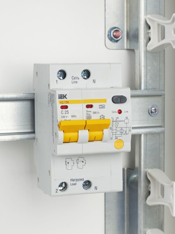 В изделиях предусмотрена индикация срабатывания от дифференциального тока, а для АД12М также светодиодная индикация включенного состояния. АД12М сохраняет работоспособность при снижении напряжения электрической сети до 110 В.