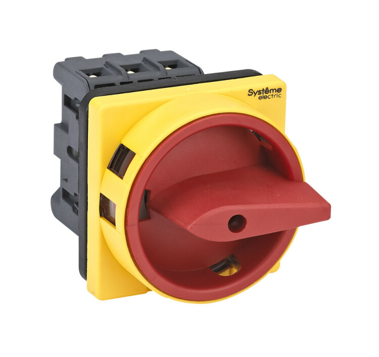 Выключатель-разъединитель MSD на номинальный ток 25 А применяется для коммутации силовых электрических цепей активной, индуктивной или смешанной нагрузок, может использоваться для включения и отключения двигателей категорий применения AC–3 и DC–3. Может применяться в качестве главного и аварийного выключателя-разъединителя. 3-полюсное исполнение с красной поворотной рукояткой с возможностью блокировки навесным замком, монтаж на дверцу.