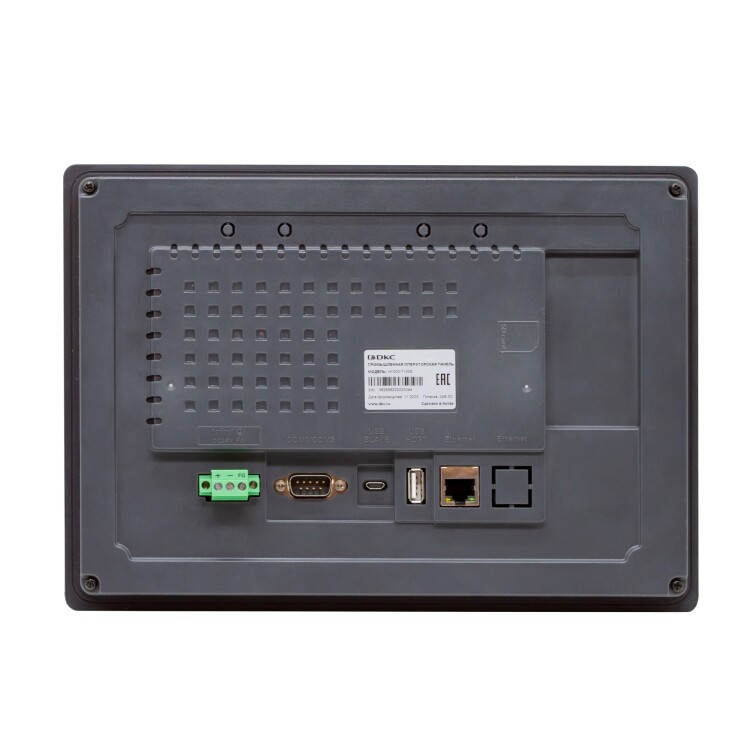 Промышленная операторская панель ДКС с диагональю экрана 10.1" предназначена для управления оператором отдельными автоматизированными устройствами или технологическими процессами: TFT дисплей 16.77М цветов, разрешение 1024*600 пикс, порты: 2 COM, 1 MicroUSB, 1 USB, 1 Ethernet.