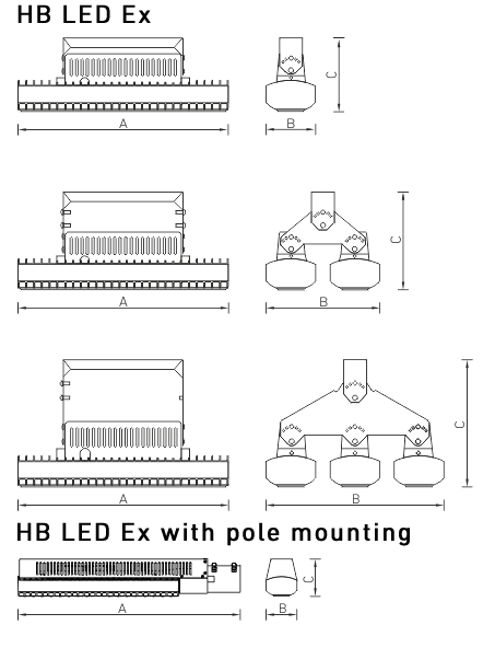 HB LED Ex - модульный взрывозащищенный светильник. Имеет высокую степень защиты IP66 и высокий световой поток. В качестве источника света используются современные светодиоды с линзами, за счет чего светильник с уверенностью можно назвать энергоэффективным.