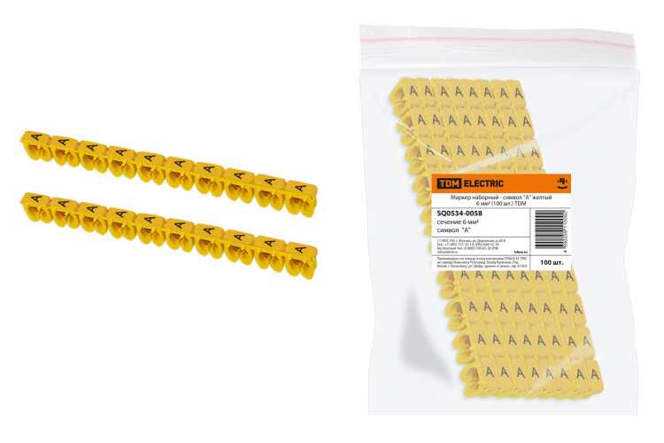 TDM Маркер наборный - символ "A" желтый 6 мм2 (100 шт.)
