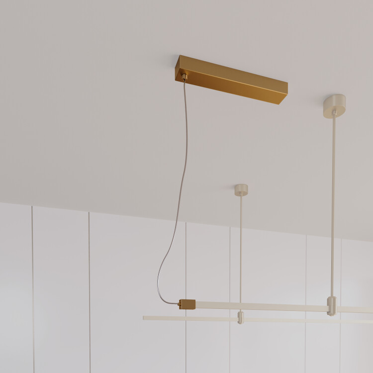 Потолочный короб для источника питания системы APRIORI с боковым подводом питания. Напряжение питания DC48V. Размер ДxШxВ: 400x60x40мм. Внутренний размер под БП ДxШxВ: 350*50*30 мм. Длина кабеля 5000 мм. Материал алюминий, цвет светлое золото. Источник питания приобретается отдельно.