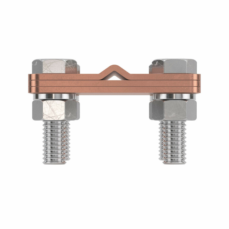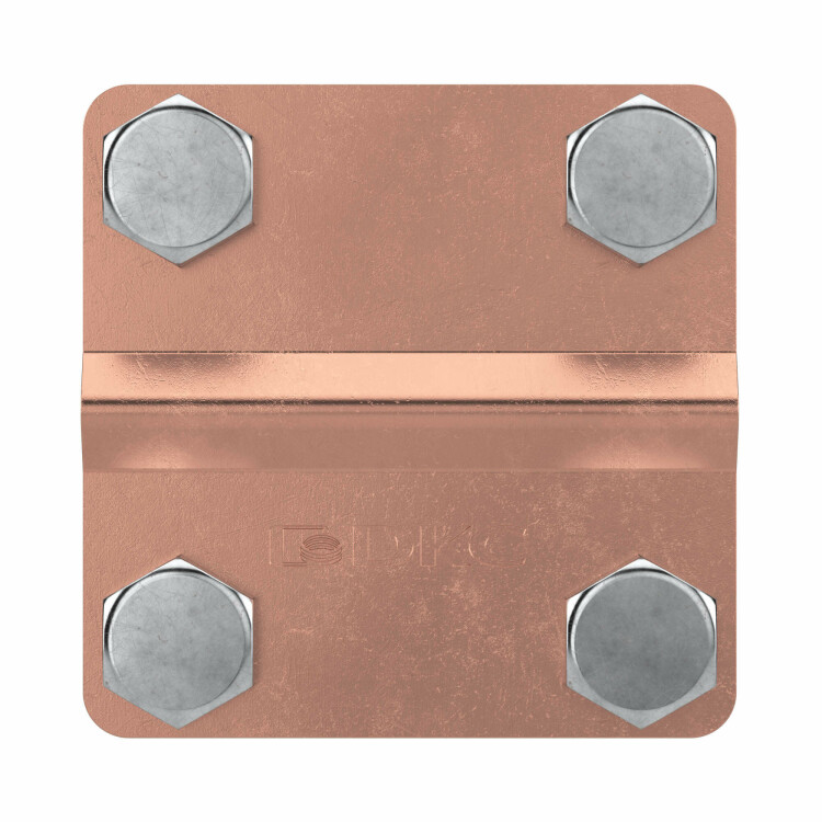 Соединитель "пруток - полоса" с разделительной пластиной используется для параллельного либо крестового соединения прутка 8-10 мм с полосой 20-25 мм. Материал - медь.