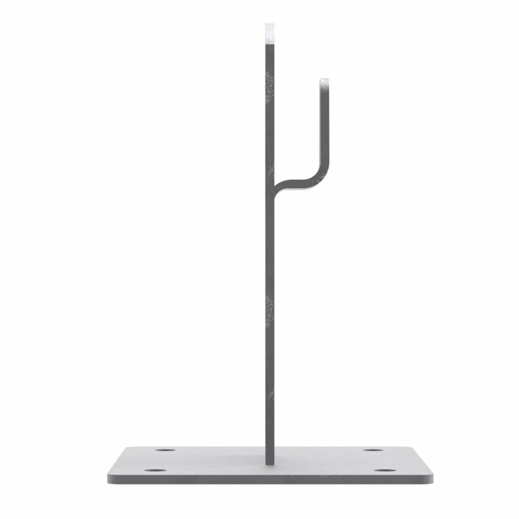 Металлический держатель используется для фиксации молниеприемной сетки на основе прутка диаметром 8-10 мм на плоской либо скатной кровле при помощи саморезов. Проводник крепится безвинтовым зажимом с применением плоскогубцев. Материал - горячеоцинкованная сталь, высота - 100 мм.