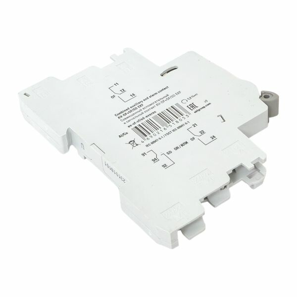 Совмещенные вспомогательные и сигнальные контакты AV-OF+OF/SD. EKF предназначены для применения во вспомогательных цепях управления, сигнализации переменного и постоянного тока. Функция дополнительного контакта AV-OF информирует о состоянии ВКЛ-ОТКЛ контактов аппарата, а функция сигнального контакта информирует о срабатывании аппарата по аварии (AV-6, AV-10, DV, DVA-6, DVA-10, AVN до 63А, ВА 47-63N, ВН-63N), к которому он присоединен.