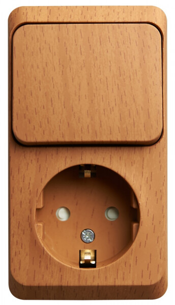 Блок Systeme Electric (ранее Schneider Electric) ЭТЮД (бук, открытой установки) предназначен для применения в сетях до 250В, состоит из розетки на 16А с заземлением и шторками и одноклавишного выключателя на 10А. Он удобен в применении и отлично подходит для коридора. Заземление обеспечивает безопасность при косвенном прикосновении. Изделия цвета Бук обладают уникальным рисунком, напоминающим древесный сруб. Сделано в России.