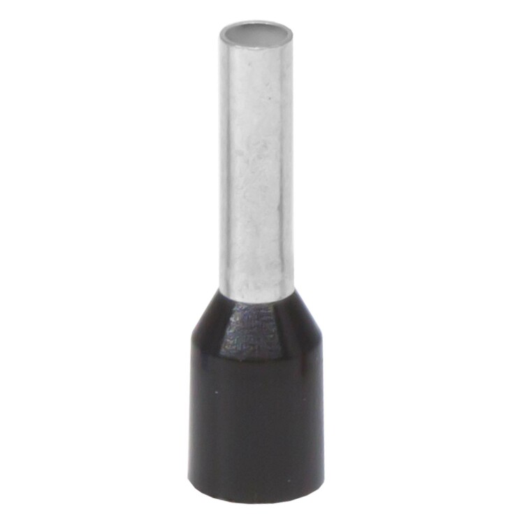 Наконечник гильза (НШВИ) предназначен для оконцевания многожильного проводника сечением 1,5 мм². Наконечник изготовляются в термопластовых автоматах, благодаря чему отсутствуют заусенцы внутри изолирующей втулки. Материал контактной части – медь М0. Покрытие - олово с содержанием висмута для повышения электропроводимости. Материал изоляции - полипропилен, не поддерживающий горение (UL94 HB). Без содержания галогенов. Длина гильзы – 8. Цвет изолирующей манжеты - черный.
