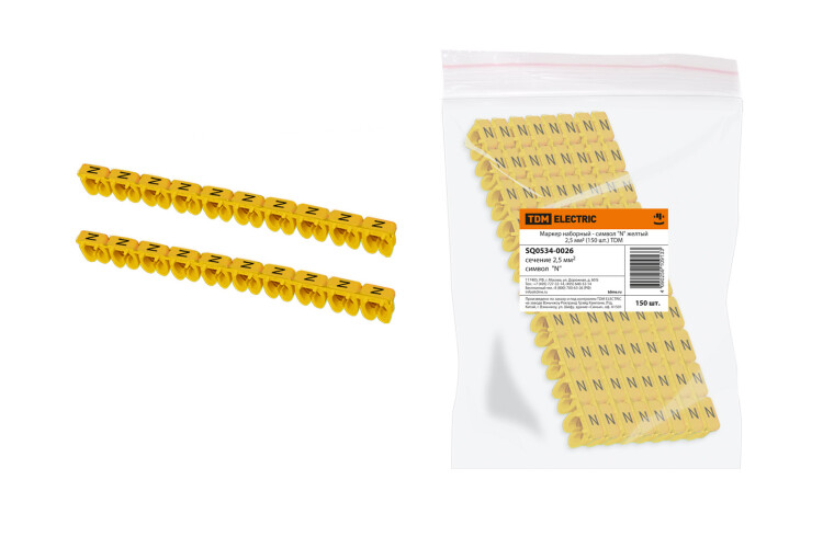 Применение:В электрощитах.На объектах электроснабжения.В промышленных установках. Материалы:Изготовлены из негорючего полиамида (PA66), устойчивого к температурным воздействиям и действию агрессивных сред (масла, смазочные материалы и т. д.).Преимущества:Боковые штифты позволяют создать ровные группы маркеров на кабеле.Быстрое и надежное крепление маркеров на кабеле. Международная система цветовой кодировки маркеров.Открытый профиль маркера позволяет производить установку на уже подключенные провода. Назначение:Для разметки кабеля в распределительных щитах, местах подключения и т. д. Упаковка:Маркер наборный - символ (100 шт.) по 10 шт.Маркеры наборные комплект цифр (100 шт.) по 10 шт.