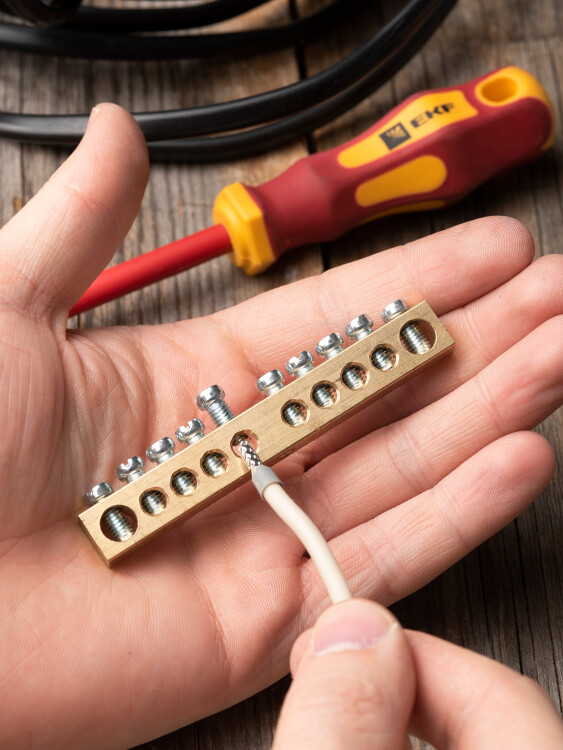 Шины предназначены для присоединения нулевых проводников (шина N) и заземления (шина PE). Шины выполнены из латуни и никелированной латуни. Нулевая шина устанавливается на изоляторе.