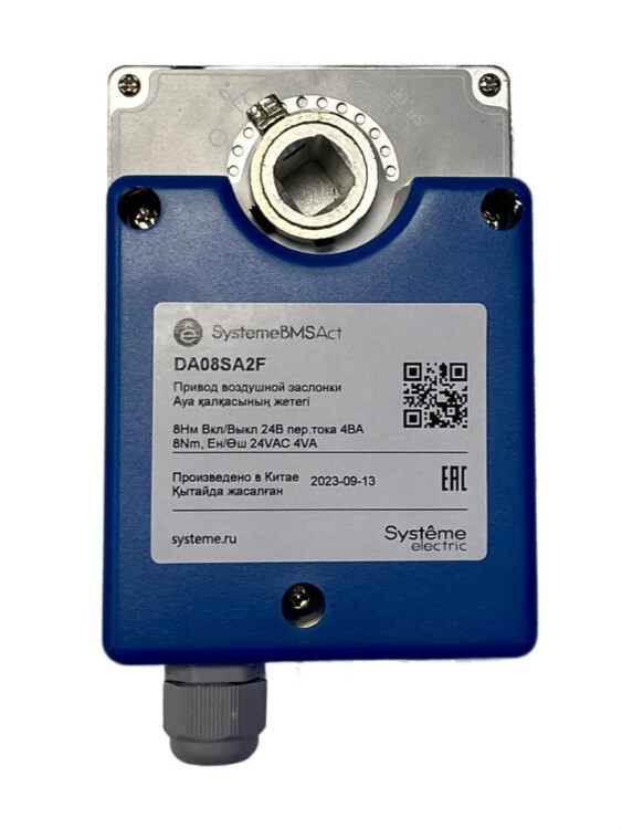 Привод воздушной заслонки, момент 8 Нм, 2-позиционный сигнал управления, обратная связь по положению 0…10 В, 2 концевых выключателя, напряжение питания 24 В переменного тока