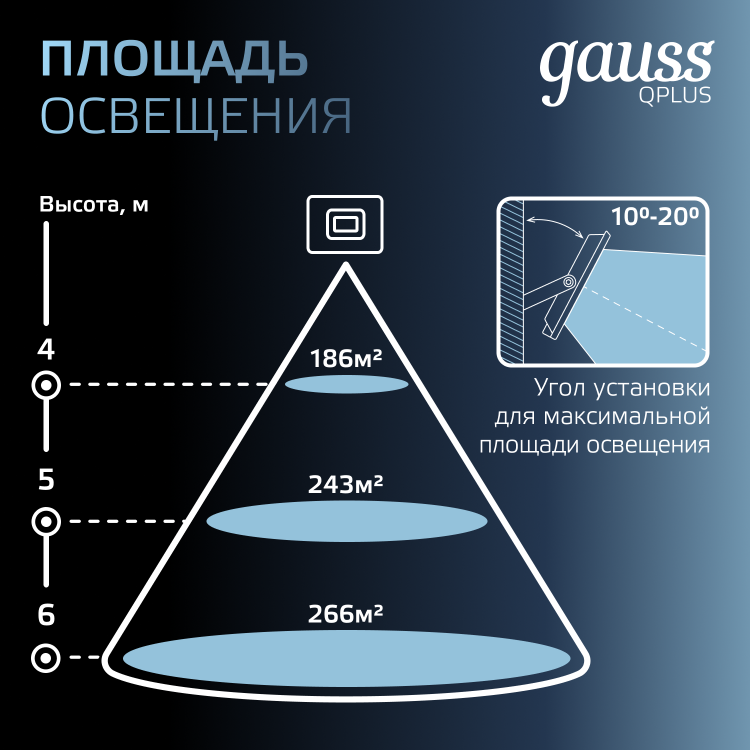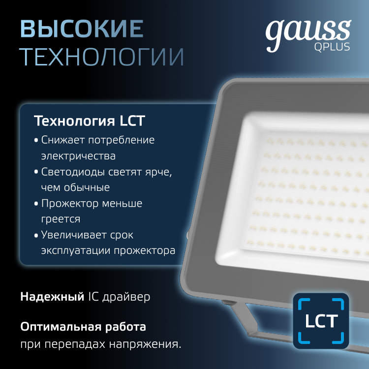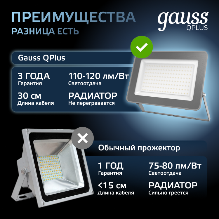 Светодиодные прожекторы Gauss серии Qplus в новом эксклюзивном цвете «графит» предназначены для освещения крупногабаритных помещений и объектов, требующих мощной подсветки. Это могут быть производственные или спортивные площадки, автостоянки, а также фасады зданий.