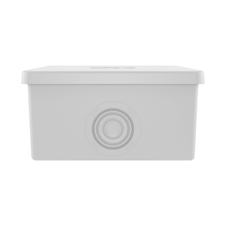 6 вводов для труб и кабеля с максимальным диаметром 20 мм, 8 защелок для фиксации крышки, 4 направляющие для крепления клеммных колодок на дне коробки.