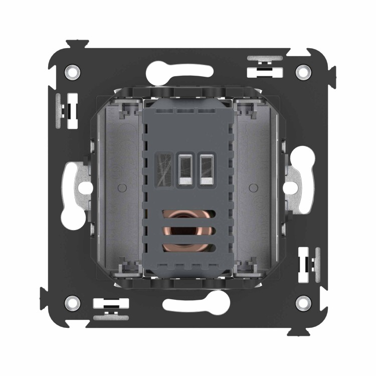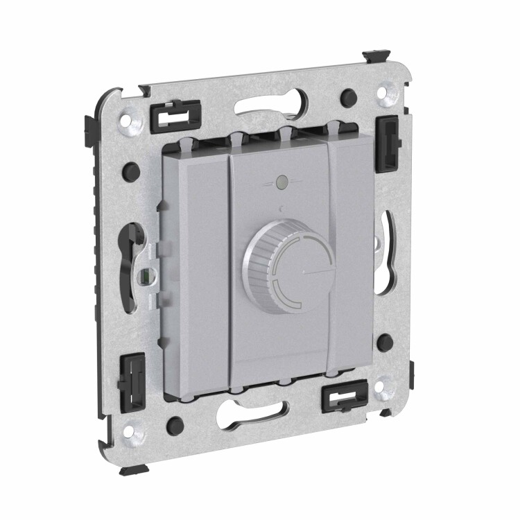 Диммер поворотный для монтажа в стену. Назначение: для монтажа в подрозеточные коробки глубиной не менее 45 мм (код 59301); управление освещением помещения; регулирование 60–800 Вт для ламп накаливания и галогенных ламп. Характеристики: диаметр отверстий для ввода кабелей – 3 мм; винтовые зажимы; шаблон для зачистки кабеля – 11 мм; встроенная подсветка. Кол-во модулей: 2. Цвет: "Закаленная сталь"