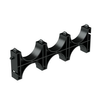 Назначение держателя расстояния (кластера) для двустенных труб - закрепление труб в определенном положении и сохранение между ними фиксированного расстояния. Кластер имеет пазы для трех труб диаметром 50 мм. Если необходимо, кластеры могут быть соединены между собой, чтобы разместить большее количество труб.