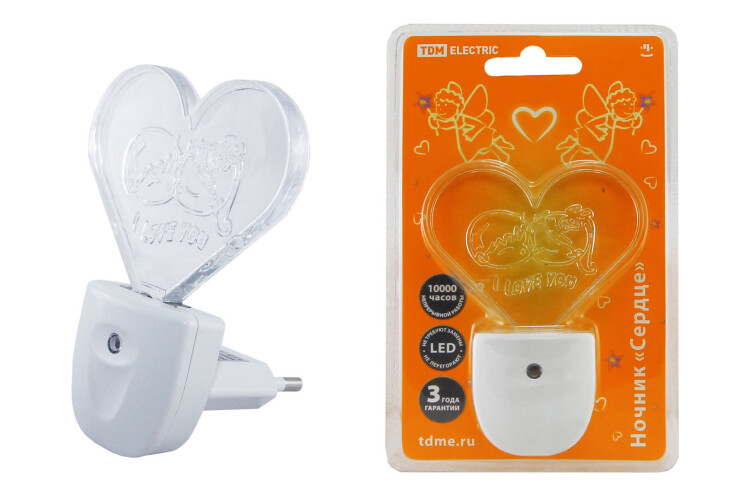 TDM Ночник "Сердце" с датчиком света,светодиодный, 0.3 Вт 220 В