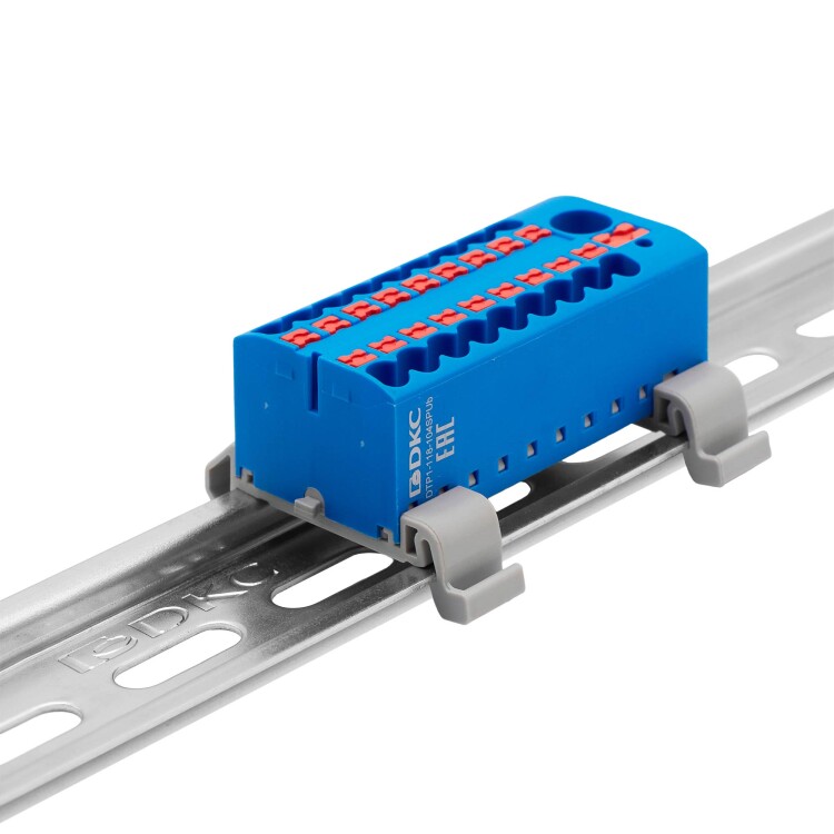 Блок распределительный с push-in зажимом предназначен для распределения потенциала на несколько точек подключения. Монтаж осуществляется на DIN-рейку шириной 15 или 35 мм и на монтажную плату с помощью адаптеров. Температура эксплуатации – от -40 до +105 °C. Корпус выполнен из полиамида 6.6 с классом горючести V0 UL-94. Цвет – синий, 1 ввод с номинальным сечением 6 мм2, 18 точек подключения с номинальным сечением проводников 2,5 мм2. Габариты (В×Ш×Г) – 21,7×56,9×28,8 мм.