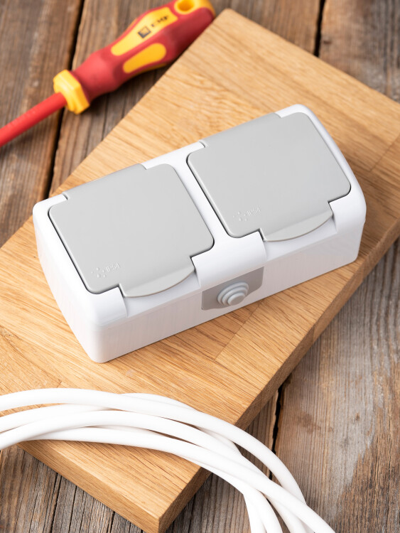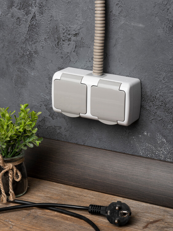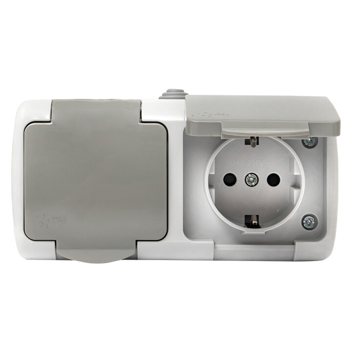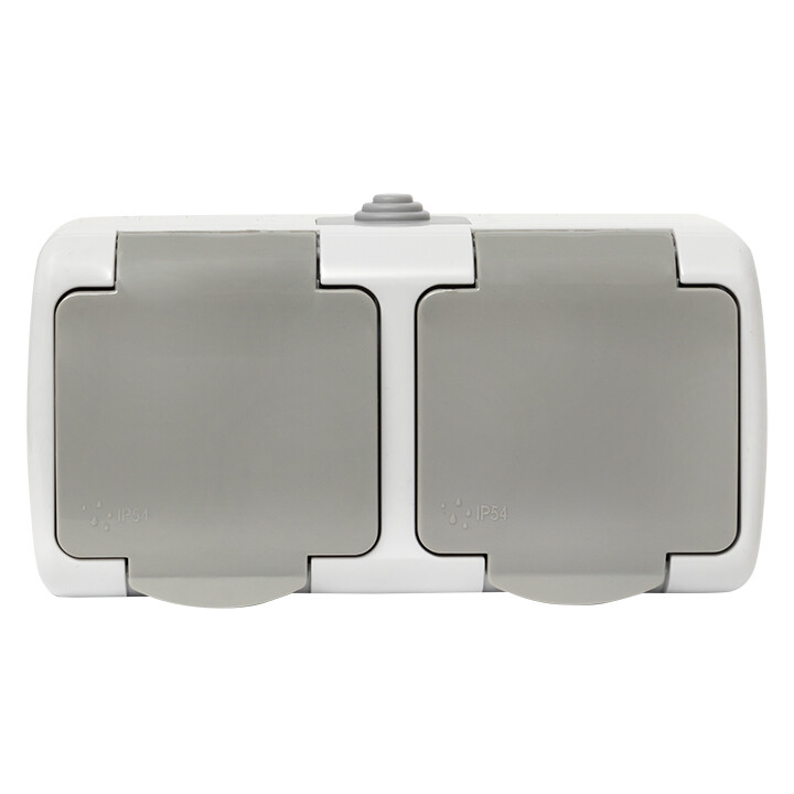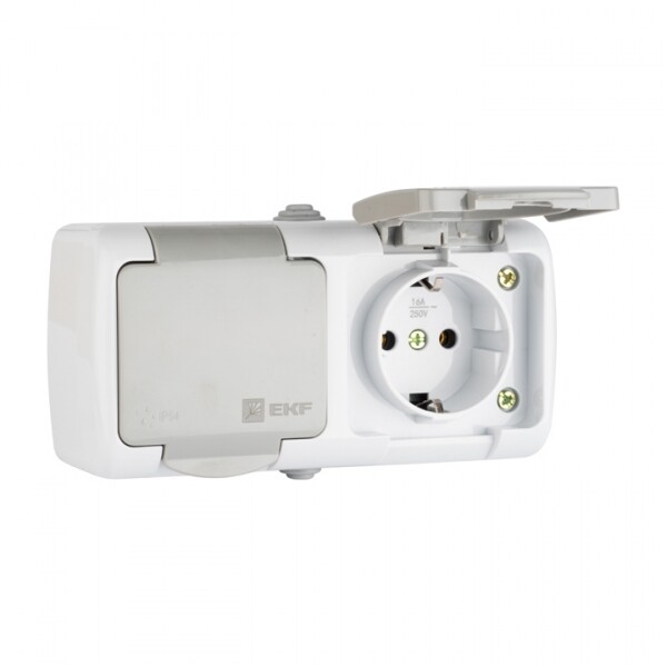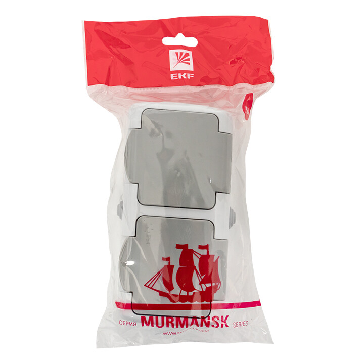 Розетка двухместная EKF серии Мурманск с заземлением, со шторками и крышкой позволяет организовать электроснабжение в условиях высокой влажности и пыльных помещениях, на улице при условии установки под навесом. Ступенчатые герметичные вводы с двух сторон изделия обеспечивают надежную защиту, позволяя использовать устройство в агрессивных условиях.