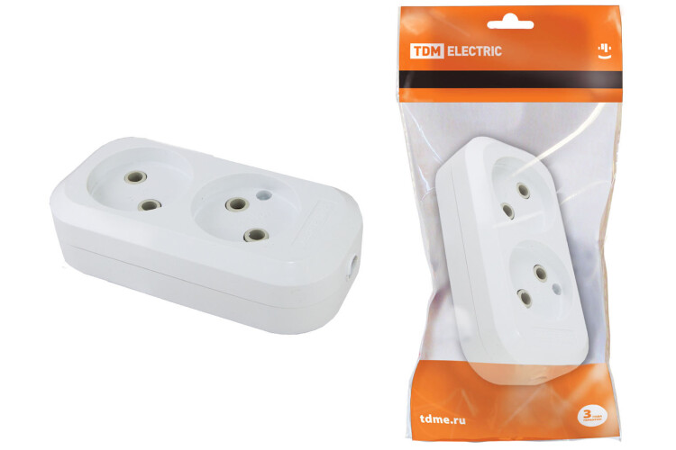 TDM Колодка розеточная 2 гнезда 2П б/з 10А 250В белая