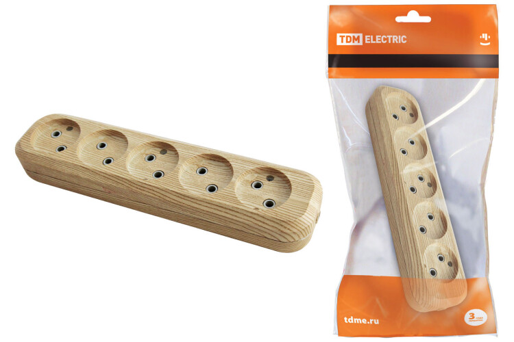 TDM Колодка розеточная 5 гнезд 2П б/з 10А 250В "Эко" (сосна)