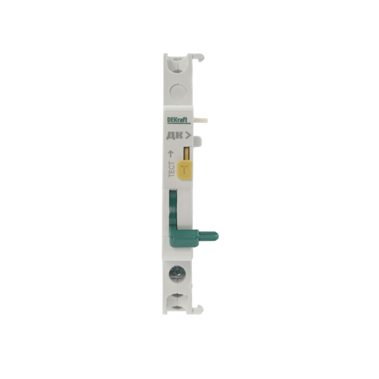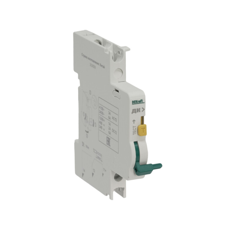 Контакт дополнительный ДК-101 для автоматических выключателей серии ВА-101 DEKraft; предназначен для сигнализации состояния выключателя ВКЛ/ОТКЛ; тип контакта переключающий; ширина 9 мм; присоединение к выключателю слева.