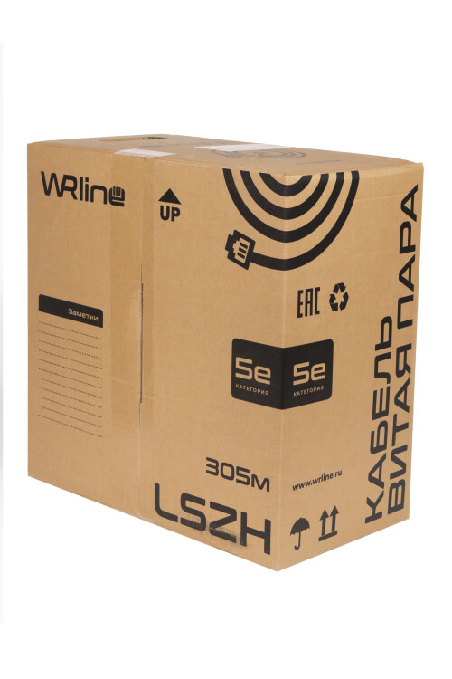 Wrline WR-UTP-4P-C5E-LSZH-GY Кабель витая пара, неэкранированный U/UTP, категория 5e, 4 пары (0,50 мм), одножильный, внутренний, LSZH, нг(A)-HF, серый, 305 м
