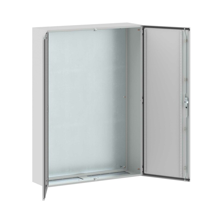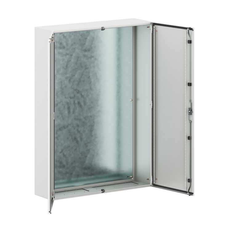 Навесные корпуса серии ST предназначены для систем автоматизации и распределения электроэнергии. Корпус, фланец изготавливаются из стали толщиной 1,2 мм, дверь из стали толщиной 1,5 мм с атмосферостойким порошковым покрытием, цвет RAL7035. Монтажная плата - из оцинкованной стали толщиной 1,8 мм. Степень защиты IP55, ударопрочность IK10, сейсмостойкость 9 баллов по шкале MSK-64, климатическое исполнение УХЛ1, ОМ2, ОМ3, группа горючести Г1. Комплект поставки: корпус, дверь двустворчатая, монтажная плата с двунаправленной разметкой, дверные рейки, ручка, сплошной фланец для ввода кабеля 2 шт., комплект заземления без проводов, монтажные аксессуары. Габариты 1400x1000x300 (ВхШхГ) мм.