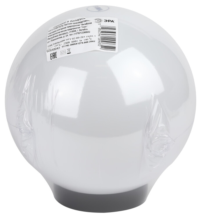 ЭРА Садово-парковый светильник НТУ 02-60-201 шар опаловый призма на опору / кронштейн IP44 Е27 max60Вт d200mm