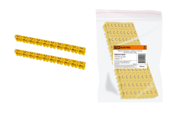 TDM Маркер наборный - символ "C" желтый 2,5 мм2 (150 шт.)