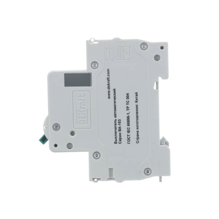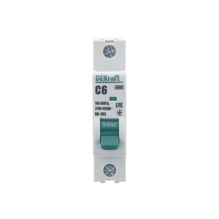 Автоматический выключатель серии ВА-103 NEW DEKraft; 1P; номинальный ток 6 А; характеристика C; отключающая способность 6 кА, что позволяет использовать аппараты в качестве вводных. 5 монолитных заклепок повышают прочность корпуса аппарата. Окошко-индикатор всегда показывает состояние контактов вне зависимости от положения рукоятки управления. Боковые каналы охлаждения повышают стабильность работы при высоких температурах окружающей среды. Есть возможность установки дополнительных аксессуаров с левой стороны устройства. Аппарат на 100% совместим с корпусами и оболочками DEKraft, Systeme Electric.
