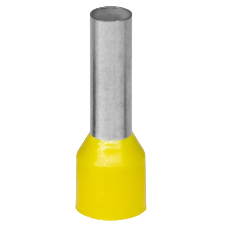 Наконечник гильза (НШВИ) предназначен для оконцевания многожильного проводника сечением 6 мм². Наконечник изготовляются в термопластовых автоматах, благодаря чему отсутствуют заусенцы внутри изолирующей втулки. Материал контактной части – медь М0. Покрытие - олово с содержанием висмута для повышения электропроводимости. Материал изоляции - полипропилен, не поддерживающий горение (UL94 HB). Без содержания галогенов. Длина гильзы – 12. Цвет изолирующей манжеты - желтый.