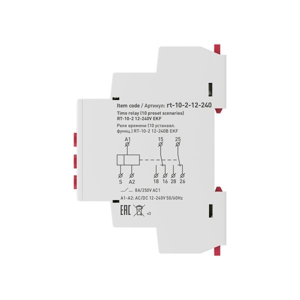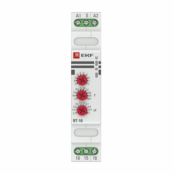 Многофункциональное реле времени RT-10 EKF является электронным коммутационным аппаратом с регулируемыми режимами работы и регулируемой установкой времени. Реле предназначено для включения или отключения нагрузки по заданным временным величинам и режимам работы. Переключение диапазонов времени и исполняемой функции производится с помощью поворотных регуляторов расположенных на лицевой поверхности реле. Реле может работать по одной из 10 возможных функций