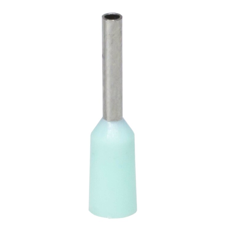 Наконечник гильза (НШВИ) предназначен для оконцевания многожильного проводника сечением 0.34 мм². Наконечник изготовляются в термопластовых автоматах, благодаря чему отсутствуют заусенцы внутри изолирующей втулки. Материал контактной части – медь М0. Покрытие - олово с содержанием висмута для повышения электропроводимости. Материал изоляции - полипропилен, не поддерживающий горение (UL94 HB). Без содержания галогенов. Длина гильзы – 8. Цвет изолирующей манжеты - бирюзовый.