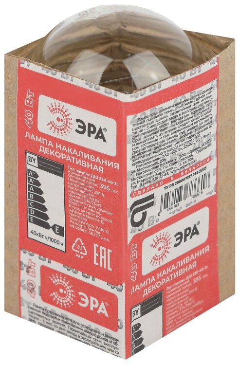 Лампочка ЭРА P45 40Вт Е14 / E14 230В шар прозрачный в гофре