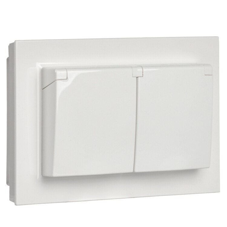IEK BRITE Белый Розетка 2-м с/з с защ штор и крыш 16А в сборе IP44 РСбш12-3-44-БрБ