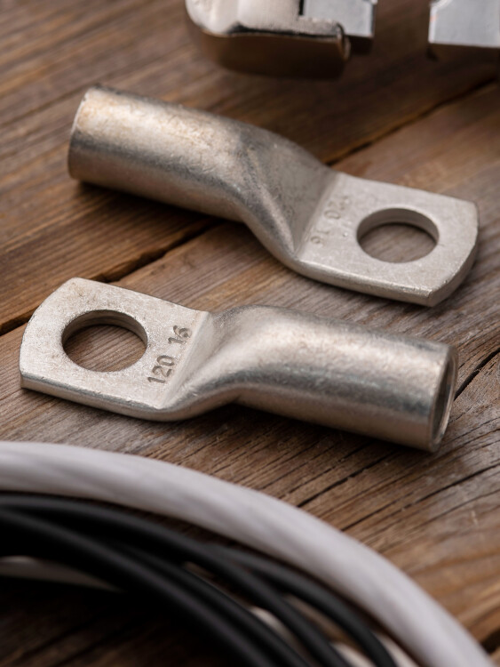 Силовые наконечники ТМЛ стандарта DIN используются для оконцевания проводов и кабелей с медными жилами посредством опрессовки для последующего болтового соединения проводника с оборудованием или шиной