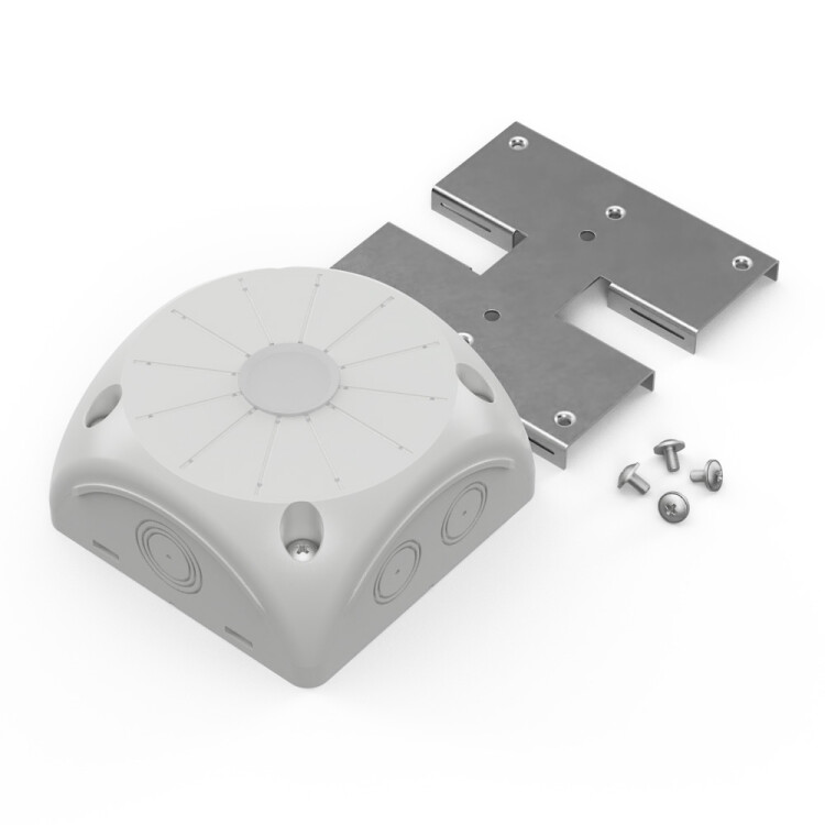 Монтажная пластина обеспечивает надежный монтаж к металлическим или железобетонным опорам при помощи металлических монтажных лент или стяжек. Винты, входящие в комплект не требуют гаек и вворачиваются в резьбовые отверстия пластины, фиксируя корпус коробки.