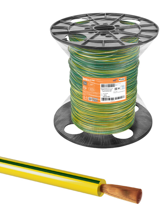 Провод ПуГВнг(А)-LS 1х10,0 ГОСТ на катушке (150м), желто-зеленый TDM