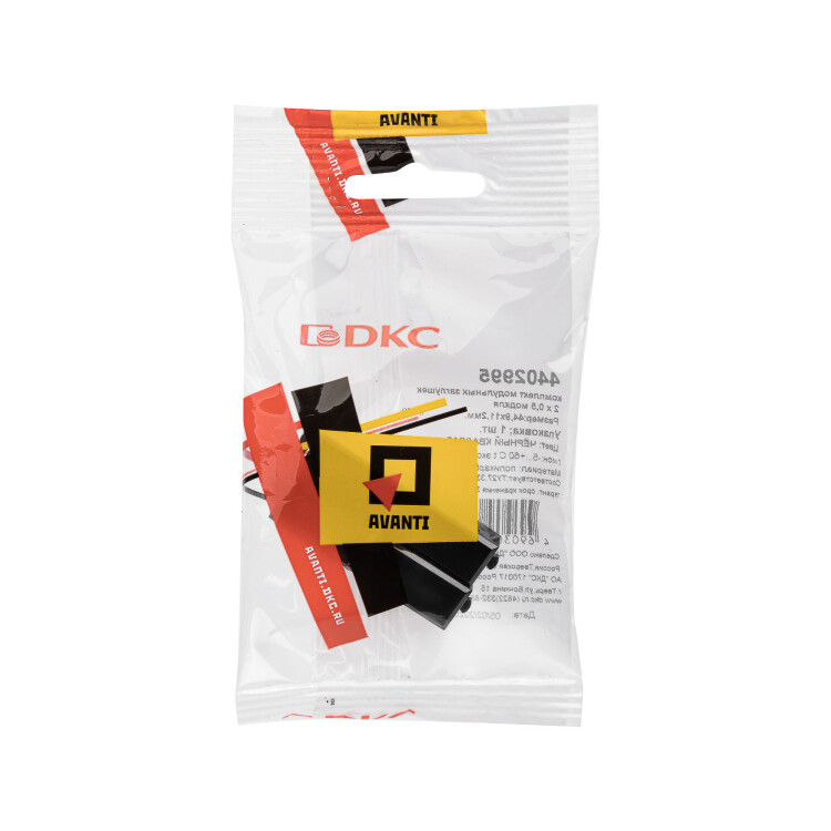 Компле кт модульных заглушек. Назначение: для монтажа в систему кабельных коробов «In-liner Front» и систему организации рабочих мест «Сотто» (Sotto) при помощи рамок-суппортов и каркасов «Avanti» (код 4400912 и т. д.); для вывода и фиксации кабеля. Кол-во модулей: 0,5. Кол-во в упаковке: 2. Цвет: «Чёрный квадрат»