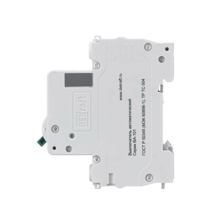 Автоматический выключатель серии ВА-101 Dekraft; 1P; номинальный ток 63 А; характеристика С; отключающая способность 4,5 кА. 5 монолитных заклепок повышают прочность корпуса аппарата. Сплошная лицевая панель обеспечивает безопасность эксплуатации аппарата. Боковые каналы охлаждения повышают стабильность работы при высоких температурах окружающей среды. Есть возможность установки дополнительных аксессуаров с левой стороны устройства. Аппарат на 100% совместим с корпусами Dekraft и Systeme Electric.