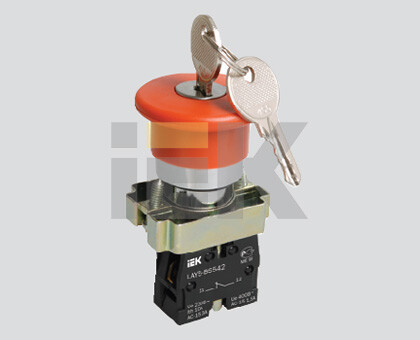 IEK LAY5 Кнопка LAY5-BS142 Грибокс ключом красная d22мм 240В 1р