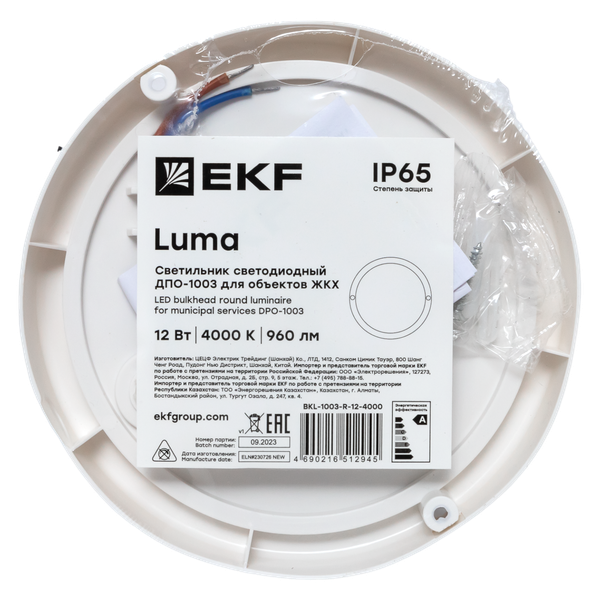 EKF Luma Светильник светодиодный ЖКХ круг ДПО-1003 12Вт 6500K IP65.